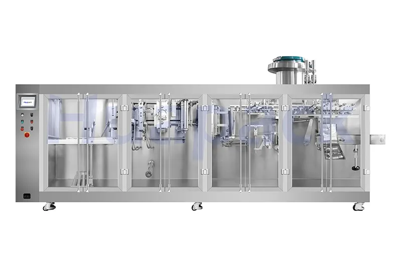 Горизонтальная фасовочно-упаковочная машина для плоских пауч-пакетов с одной дозирующей головкой