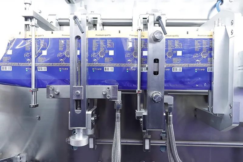 Эти упаковочные линии HFFS работают с рулонной пленкой, обеспечивая полную автоматизацию производства в едином цикле. Машина последовательно выполняет формирование пауча, дозирование продукта, обрезку, раскрытие, наполнение и герметичную запайку с последующим контролем веса. Благодаря четкой синхронизации механических узлов и системы управления, оборудование работает плавно, без лишних остановок, поддерживая стабильный темп выпуска на уровне 40 пауч-пакетов в минуту.