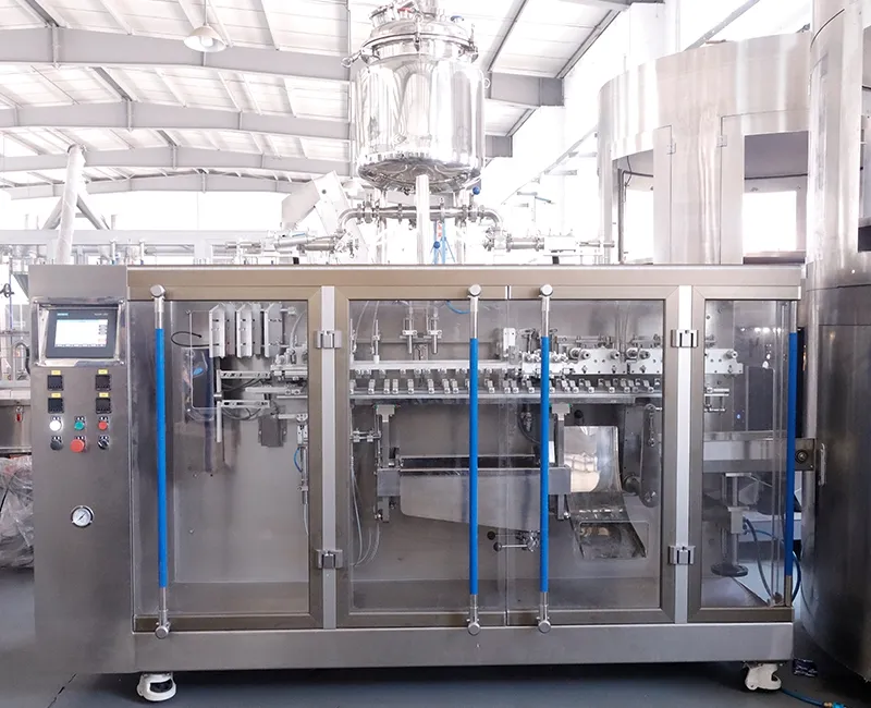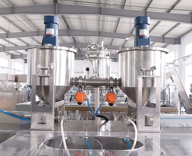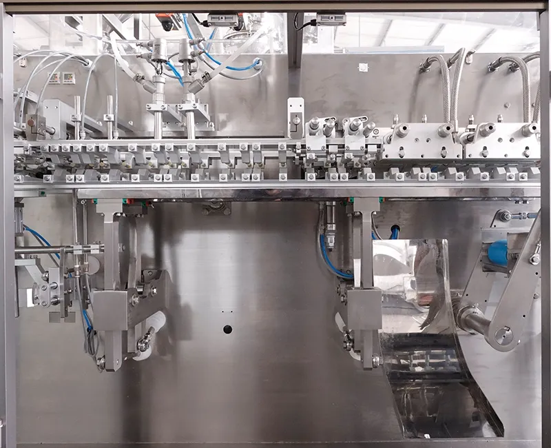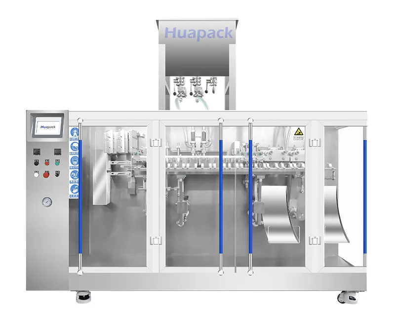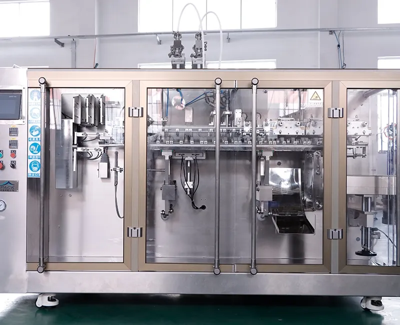 Эти машины для фасовки в готовые пауч-пакеты разработаны для продуктов небольшого объёма, обычно в диапазоне 10-200 мл. За счёт параллельной работы двух дозирующих головок за один цикл обрабатываются сразу два пакета вместо одного, что повышает производительность. В реальных условиях эффективность может быть примерно на 80% выше по сравнению с одноголовочными машинами, поэтому за то же производственное время можно упаковать больший объём продукции. В качестве упаковки используются готовые пакеты, а весь процесс, включая захват, раскрытие, наполнение и запайку, выполняется в синхронизированном цикле. Такое оборудование широко применяется для упаковки косметики, пищевой продукции, фармацевтических товаров, нутрицевтиков и кормов для домашних животных.