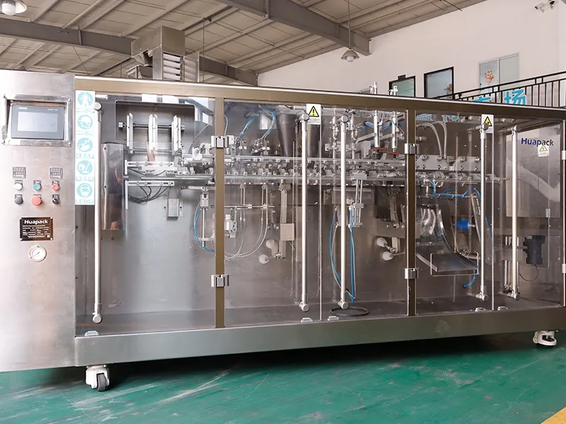 Эти горизонтальные автоматические упаковочные машины предназначены для работы с готовыми пакетами дой-пак и поддерживают форматы объёмом до 700 мл. Две дозирующие головки работают одновременно, поэтому два пакета наполняются сразу в одном цикле, что позволяет линии достигать производительности до 80 пакетов в минуту. Это повышает выпуск продукции и при этом сохраняет стабильность процесса наполнения и удобство управления. Машины для фасовки в готовые пауч-пакеты с 2 дозирующими головками хорошо подходят для средних и более крупных форматов, особенно на линиях, где требуется повышенная производительность при сохранении точности наполнения и аккуратной формы пакета.