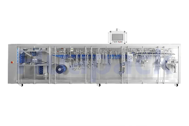 Эта машина предназначена для высокопроизводительного выпуска фигурных пауч-пакетов с формованием непосредственно из рулонной плёнки. Производительность до 180 пакетов в минуту делает её подходящим решением для крупных производств, особенно в сфере косметики и бытовой химии, где критически важны высокая скорость, стабильность процесса и одинаковое качество упаковки. Оборудование сочетает высокий уровень автоматизации с точным управлением движением и запайкой. Даже на высокой скорости наполнение остаётся стабильным, качество швов сохраняется на одном уровне, а готовые пакеты получают аккуратную и чётко выраженную форму. Машина рассчитана на непрерывную работу, сохраняя как качество продукта, так и внешний вид упаковки.