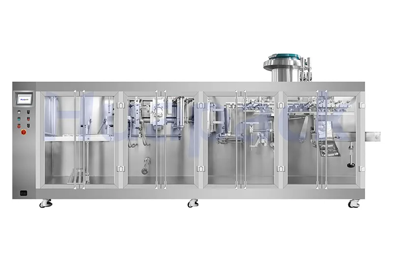 Горизонтальная фасовочно-упаковочная машина для пауч-пакетов со штуцером с одной дозирующей головкой (HFFS)